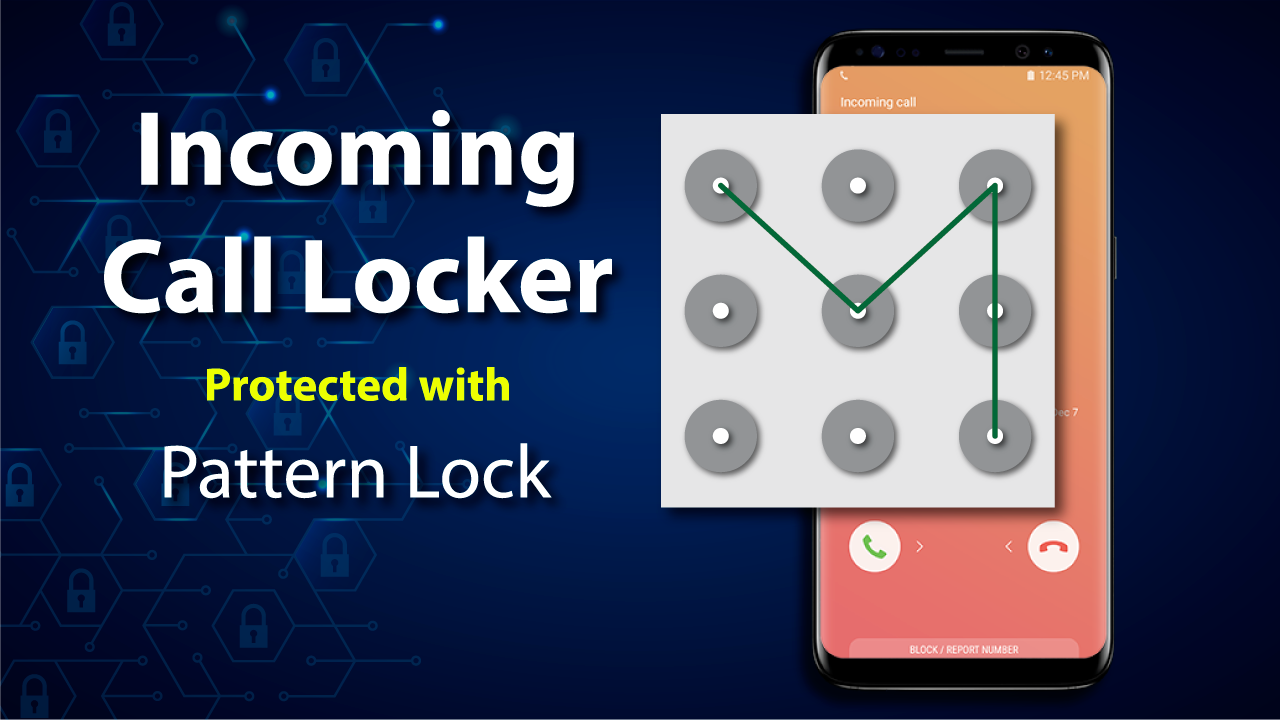 any other details. The password screen popups on Incoming Calls to hide all information about the caller. You can protect your incoming calls by using either pattern lock or pincode security. This app also allows the user to protect All incoming calls, Unknown contacts or for selected contacts only. Using this app will secure your incoming calls by Selecting the Password Lock or Pattern Lock.